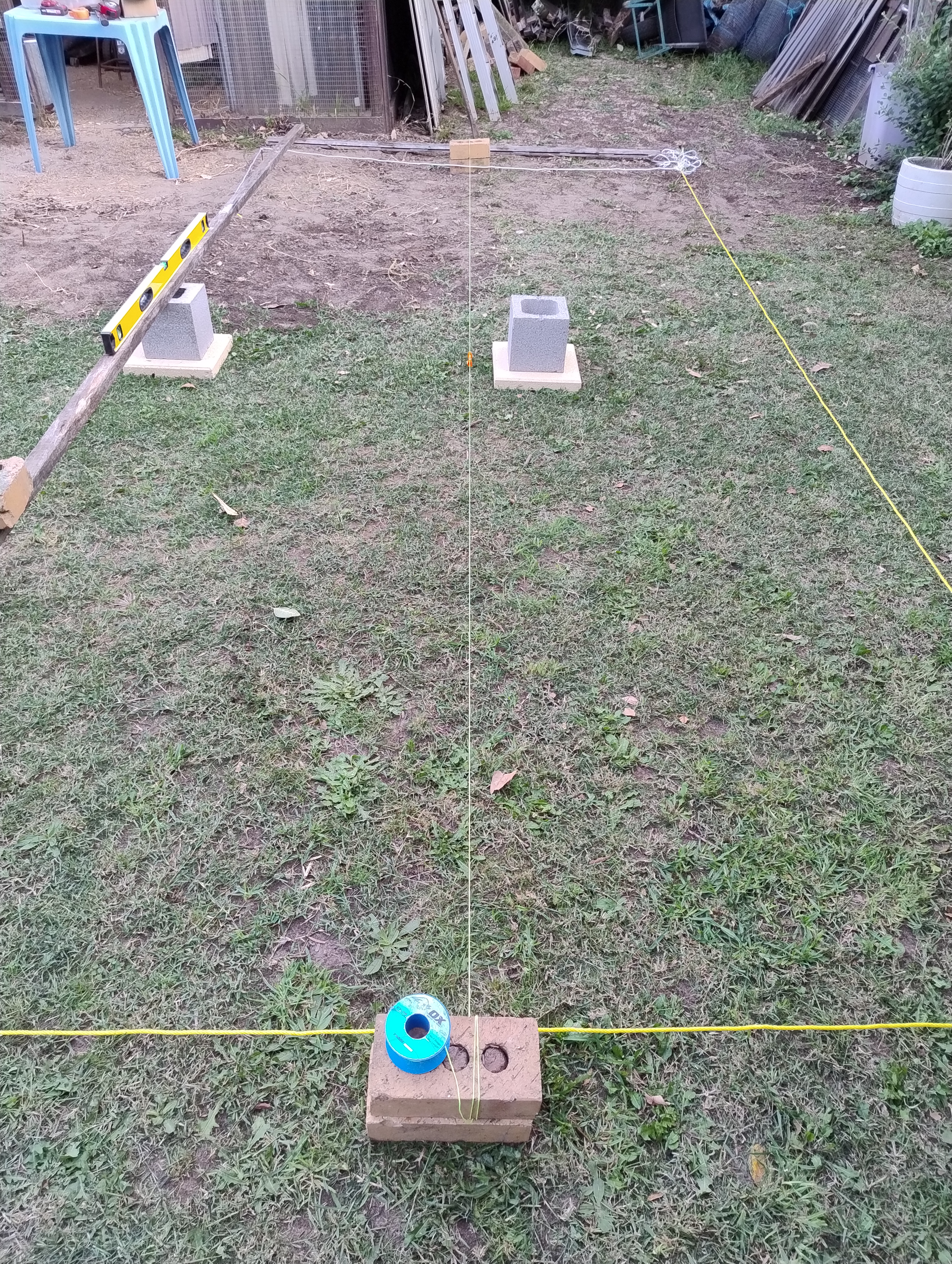 The string line across the middle is my base reference for the welded steel pod base frame.