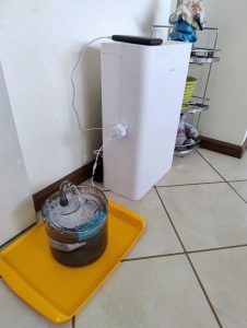 The kitty’s are slowly adapting to the fountain but still prefer to drink from a glass in the left bowl of the kitchen sink and yes… there is a bowl of water next to their food – go figure.