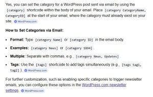 Quite nifty for basic posts but wondering if there is a way to set the Category which defaults to Uncategorized so I did a Google and found this.