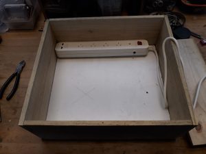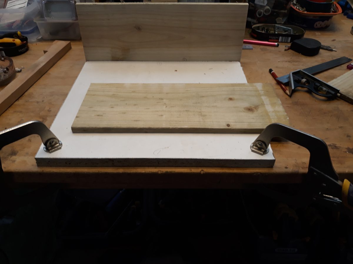 With the base clamped I can hold the side against the base edge and bead nail. Repeat for the other three sides.