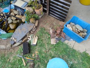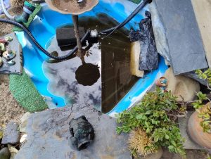 Waiting and watching while the pond fills to about half then I’ll back of the garden tap.