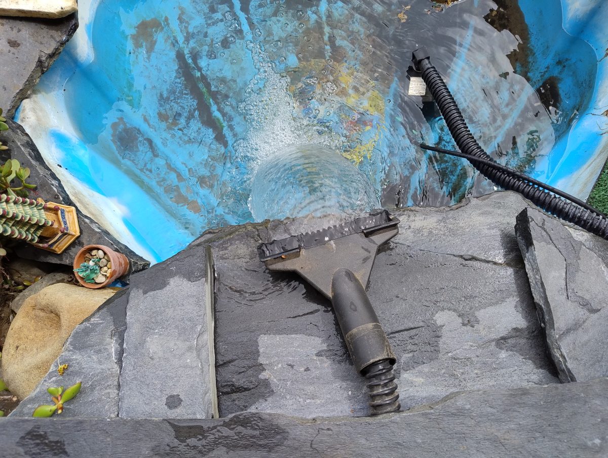 With the water exchange done in the next session we will focus on getting the waterfall working again. The diffuser is actually a vacuum cleaner hard floor accessory tool.
