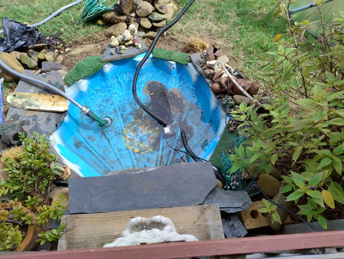 Waiting and watching while the pond fills to about half then I’ll back of the garden tap.