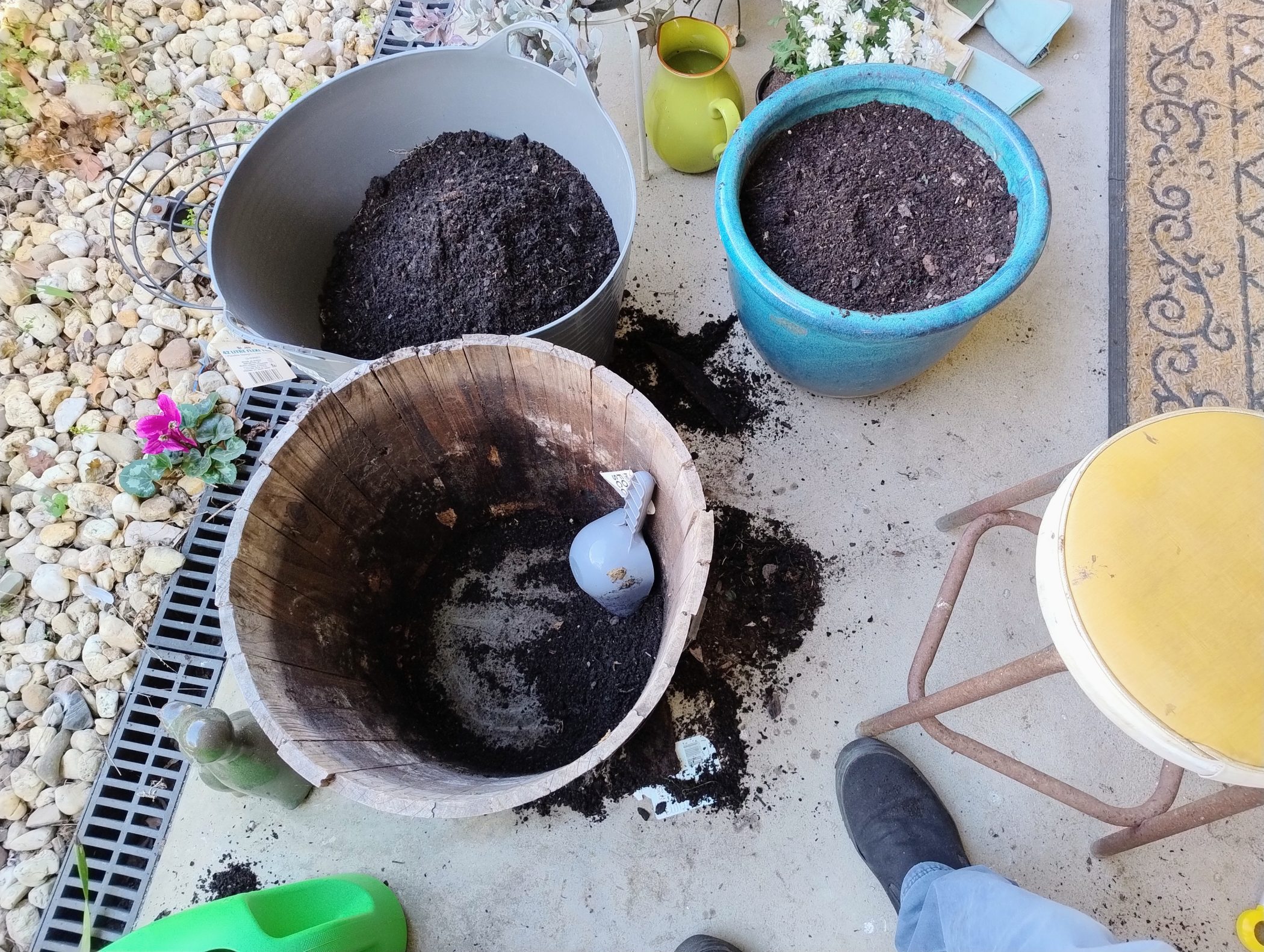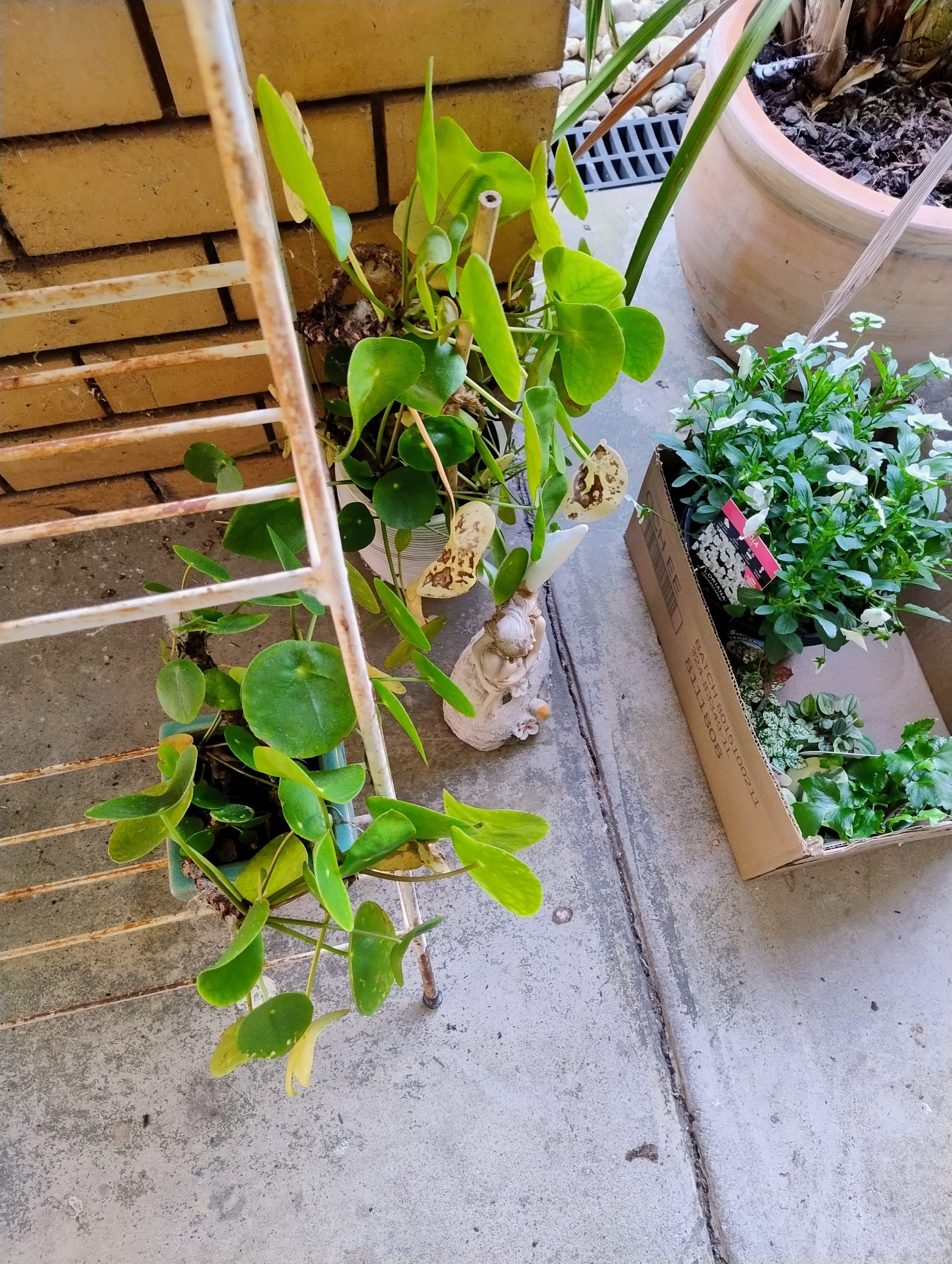 Among other things on the Bunnings shopping list was pot plants to refresh the front porch.