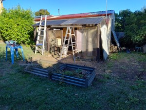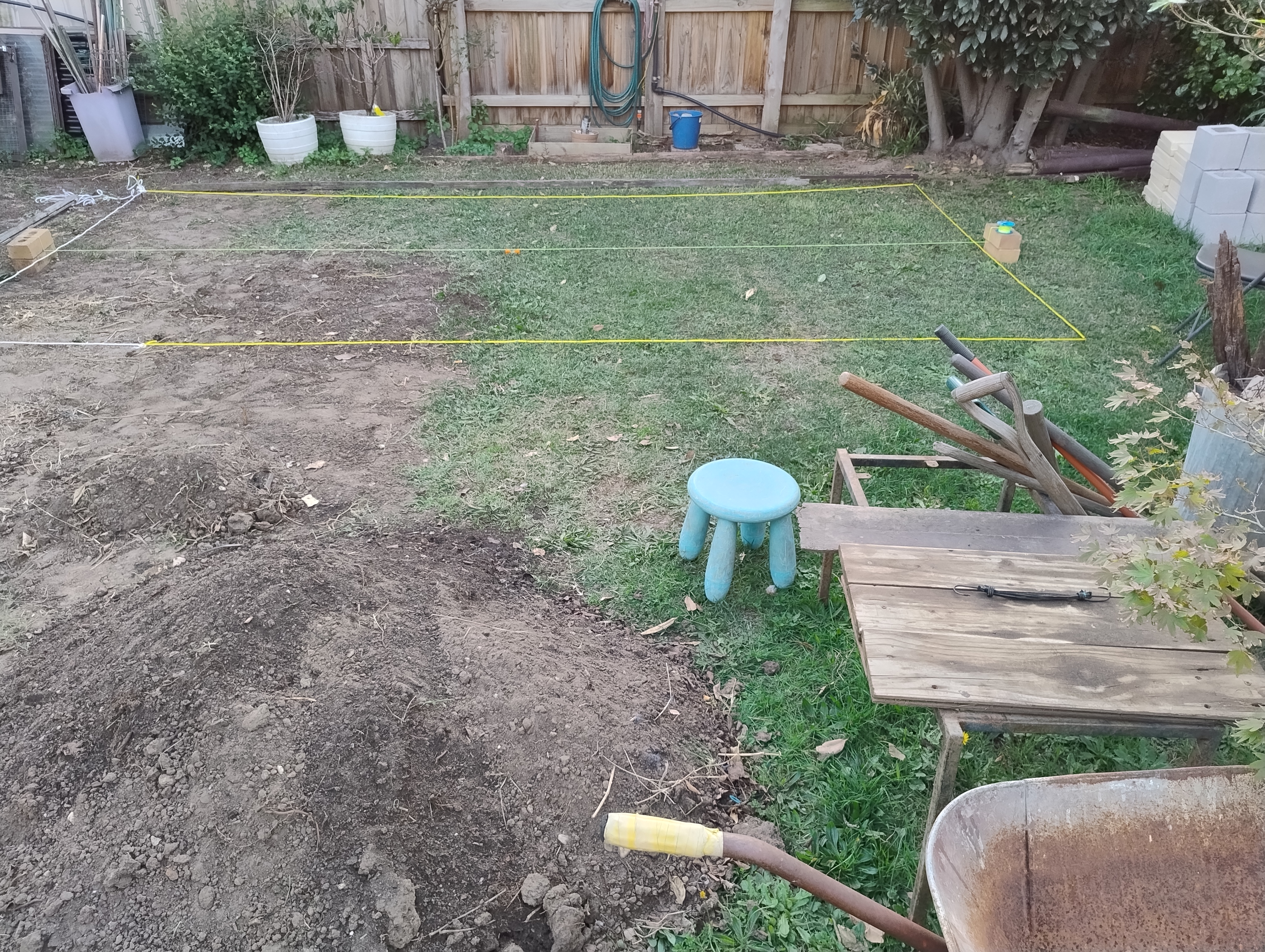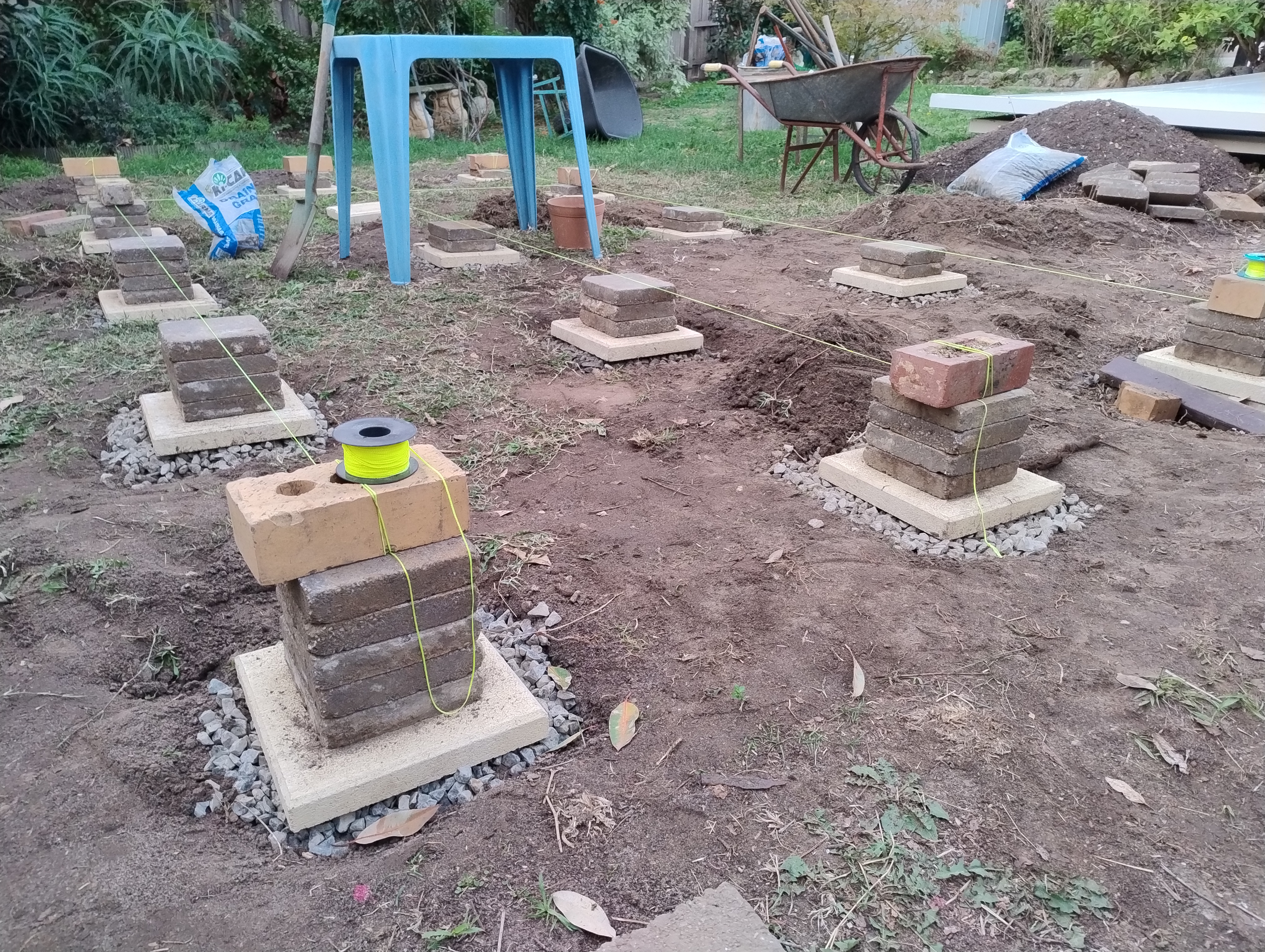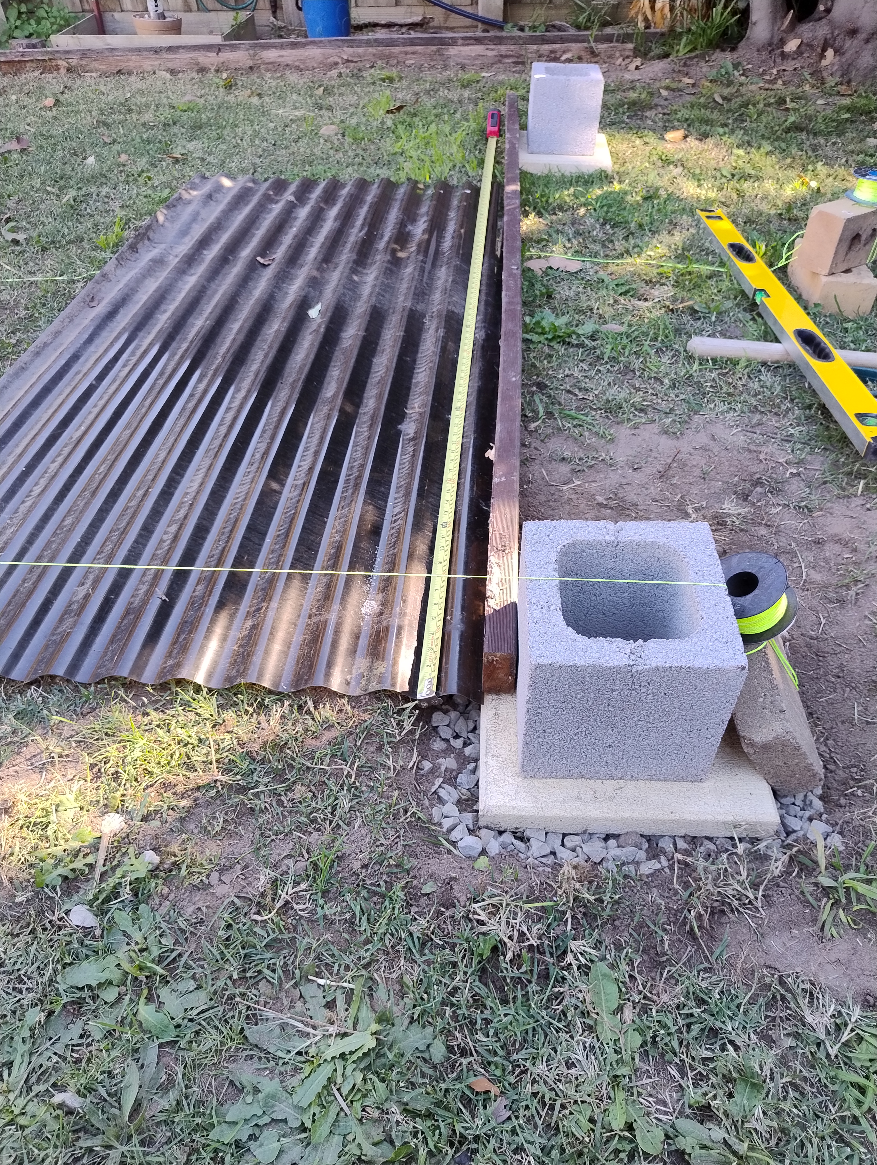 We are doing the back right pad and using the poly roofing sheet to ensure things are square.