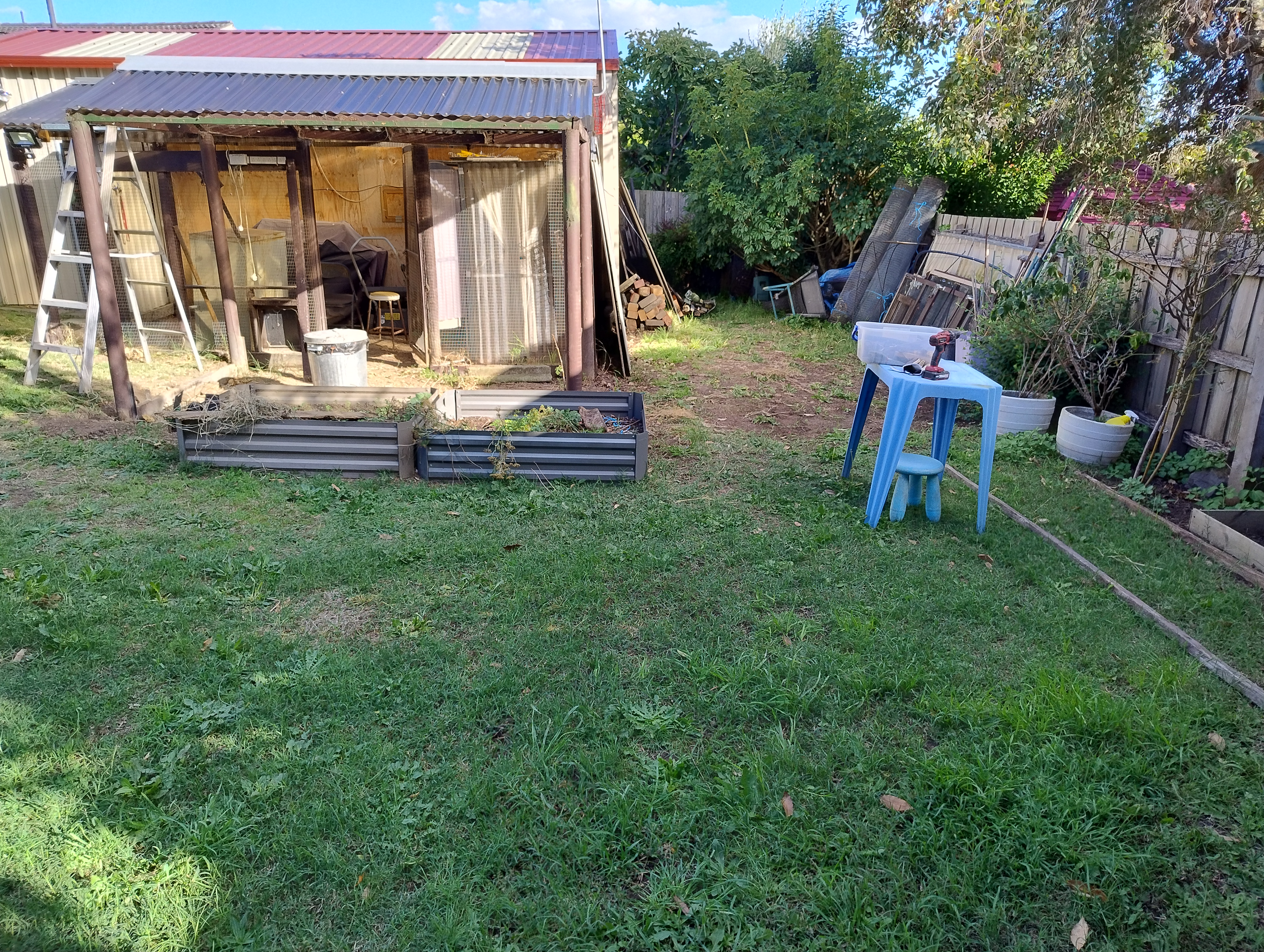 After 25 years we quit backyard chooks last August and since then the chook area has been standing there like a relic from the past and this year I started storing stuff in there. We have decided to get a backyard Pod as a stay over for family and friends so the chicken annex needs to be dismantled to make room. The actual chook run will remain and be converted to a covered patio area.