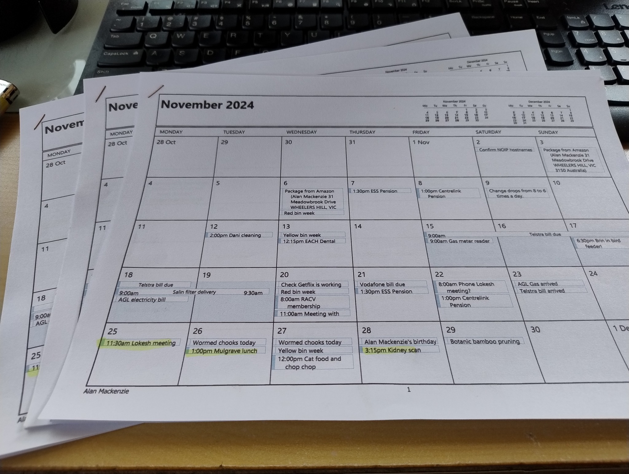 From December 2023 I have had lots of Outlook 2021 calendar health appointments and wondering why I did not think to do printouts like this. With poor eyesight I have been standing at counters struggling try to read the phone to check if the suggested appointment date is going to clash with another one!